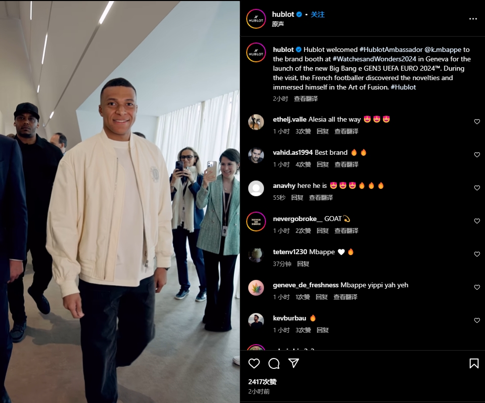 04月12日訊 在歐冠四分之一決賽第一回合輸給巴塞羅那后的第二天,姆巴佩前往瑞士日內(nèi)瓦參加鐘表展。